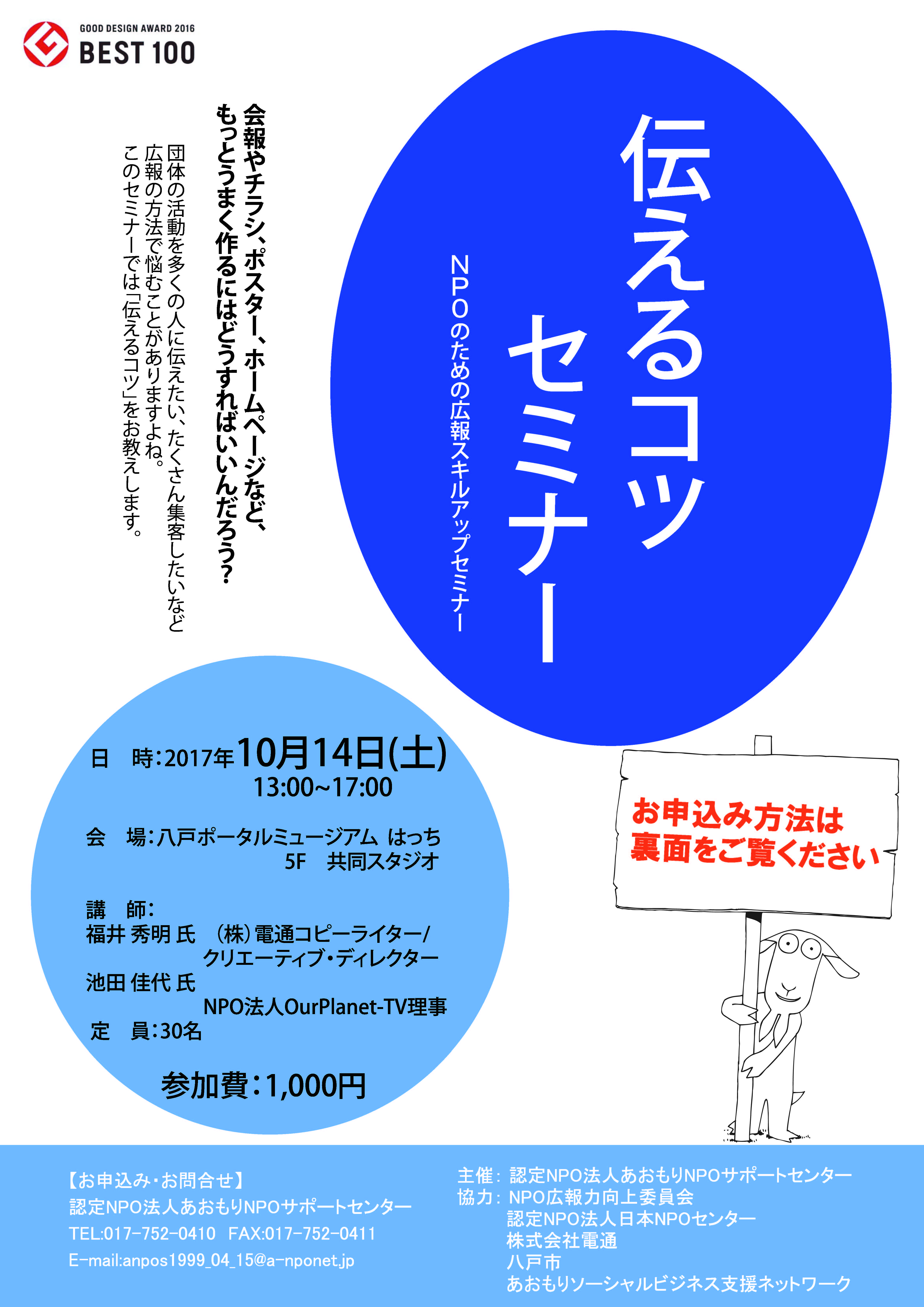【伝えるコツセミナーin八戸】10/14開催します。